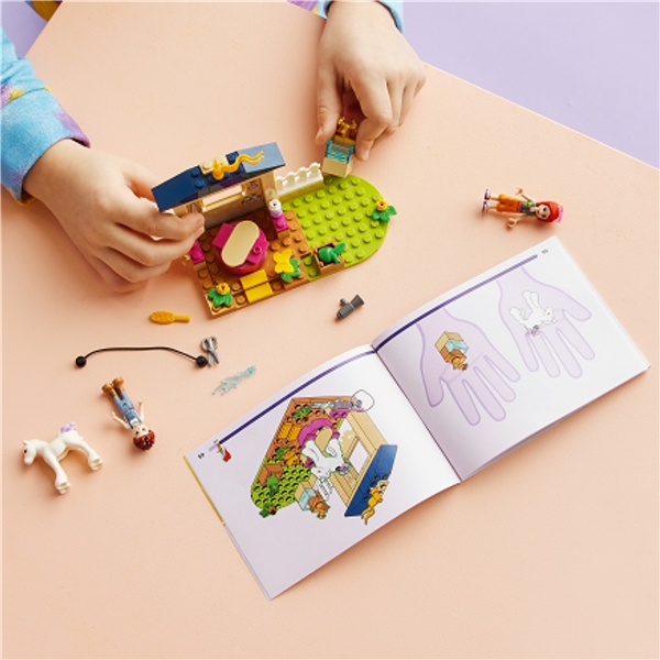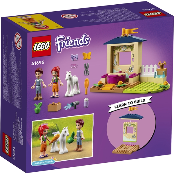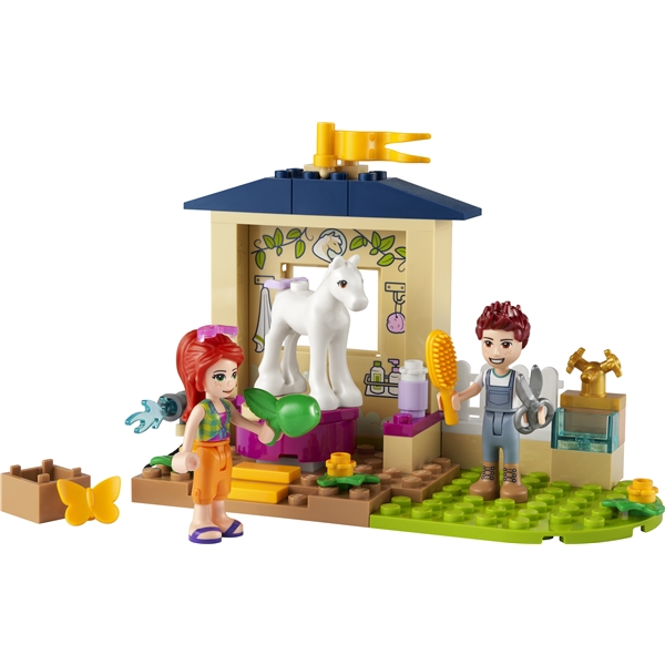 Tallilla voi pestä ja harjata Mian ponia. Auta Marenki pyörivälle jalustalle ja suihkuta sitä virkistävällä vedellä joka puolelta. Auta Danielia kampaamaan ja leikkaamaan ponin harja upeaksi. Palkitse poni omenalla hyvästä käytöksestä!