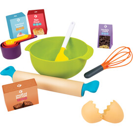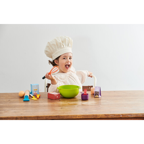 Inspiroidu pienestä leipurista astumaan keittiöön! Setti sisältää kaiken tarvittavan herkkujen leipomiseen – vispiläkulho, kaulin, nuolija ja vispilä sekä neljä mittaa. Sopii sekä oikeaan leivontaan että leikkiin.