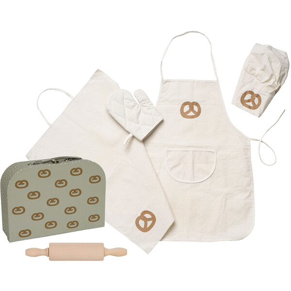 Nyt lapset voivat todella näyttää ammattilaisilta keittiössä tämän kokin vaatesetin avulla, joka sisältää esiliinan, kokinhatun ja keittiöpyyhkeen. Leikin tekemiseksi vielä todentuntuisemmaksi mukana on myös leikkikaulin.