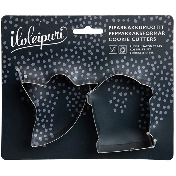 Kaksi hauskaa piparkakkumuottia kummitusteemalla. Leivo ja koristele Halloweeniksi, juhliin ja kummitusteemaisiin tilaisuuksiin. Keksit, joilla on hauska ja luova muoto, maistuvat vielä paremmilta!
