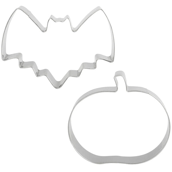 Kaksi hauskaa piparkakkumuottia Halloween-teemalla, kurpitsa ja lepakko. Muotit ovat 6-7 cm korkeita. Leivo ja koristele Halloweeniin, juhliin ja kekkereihin. Keksit, joilla on hauska ja luova muoto, maistuvat vielä paremmilta!