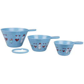 Kolmiosainen mittasarja PP-muovista, kauniin sininen väri ja talvinen Muumi-painatus.