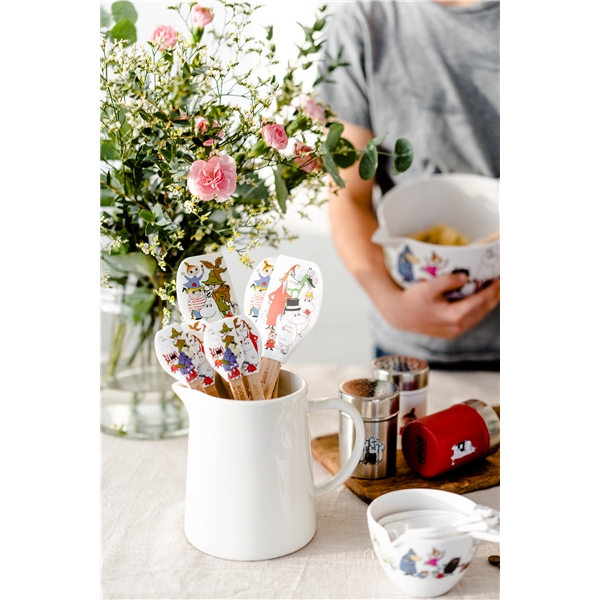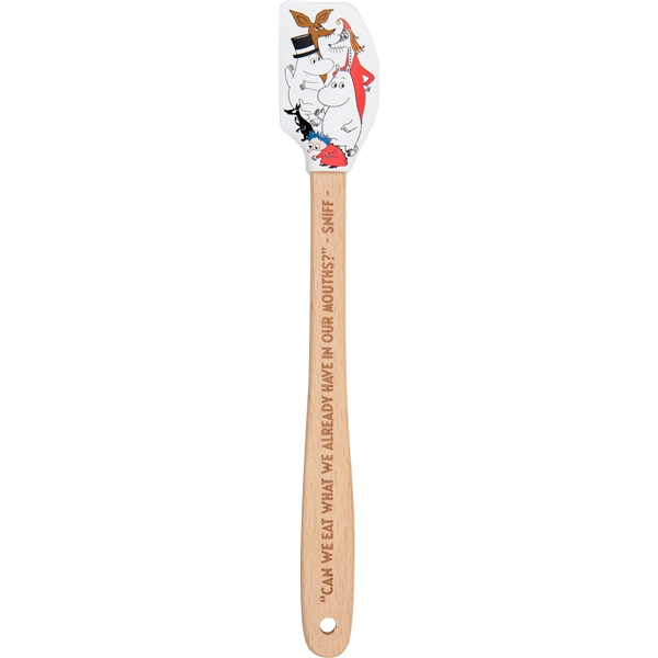 Muumi Nuolija Muumijengi on nuolija valkoisella silikoniterällä ja siihen on molemmin puolin painettu hieno ja värikäs muumijengiä esittävä kuva. Varsi on puinen ja sen yläosassa on reikä ohueen koukkuun ripustamista varten. Varren yhdelle puolelle on laserkaiverrettu teksti 'Can we eat what we already have in our mouths?' - Sniff.