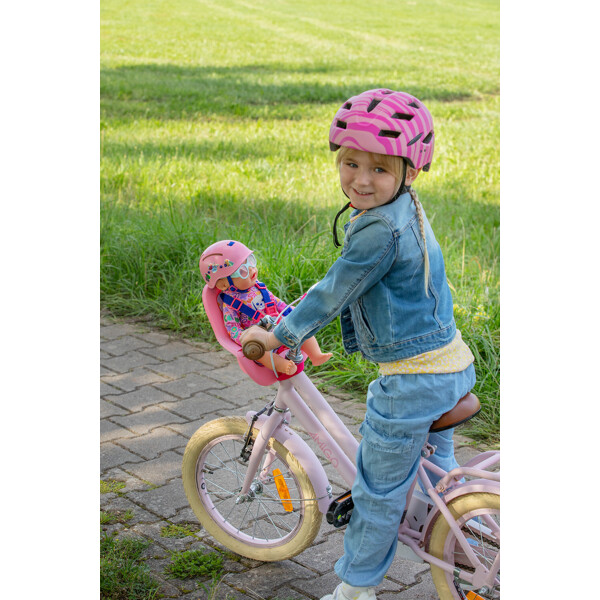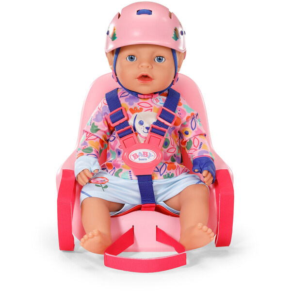 Kiinnitä vain istuin pyörään valjaiden avulla, laita BABY born siihen, kiinnitä solki ja lähde matkaan!