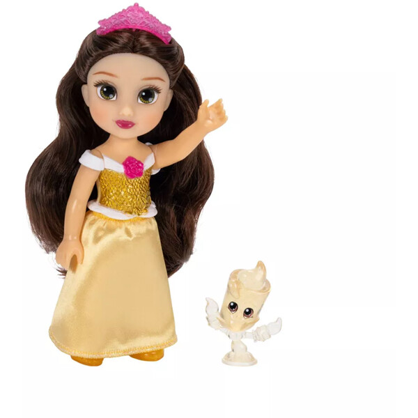 Pukeutuneena hänen tunnusomaiseen tanssiaispukuunsa, Belle ja Lumiere ovat valmiita isännöimään upeaa tanssia! Tämä 15 cm korkea pieni nukke on täydellisen kokoinen leikkeihin liikkeellä ollessa.