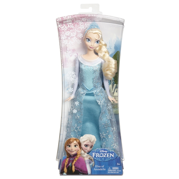 Disney Prinsessat - Frozen, Elsa on suloinen Elsa Disneyn uudesta, hauskasta elokuvasta Frozen! Elokuvassa tapaamme Annan ja hänen siskonsa Elsan joilla on suuri salaisuus. Elsa voi hallita jäätä ja se on voima joka pitää pitää salaisuutena. Kun tapahtuu onnettomuus, ja Elsa ei voi hallita jäätä ja talvea sisällään, lähtee hän pakomatkalle suojatakseen pientä kyläänsä. Mutta talvi ja jää ovat kylässä hänen lähtönsäkin jälkeen ja on Annan tehtävä löytää siskonsa jotta hän voi poistaa jään kokonaan! Mutta haluaako Elsa palata kyläänsä ja tulevatko kylän asukkaat hyväksymään hänet?Tämän upean Elsa-nuken avulla voit elävöittää seikkailuitasi muiden Frozen-elokuvasta tuttujen hahmojen kanssa.