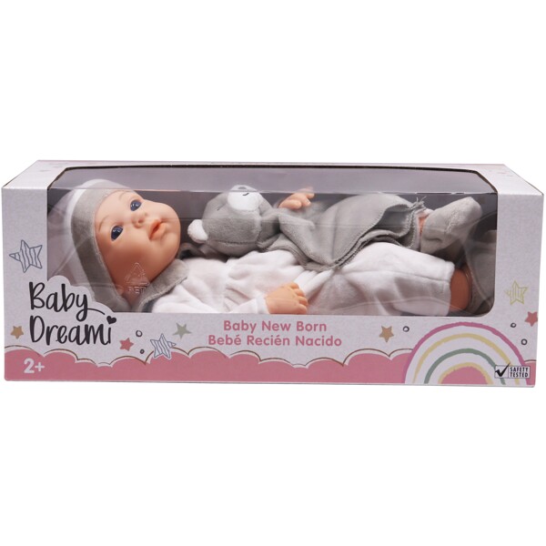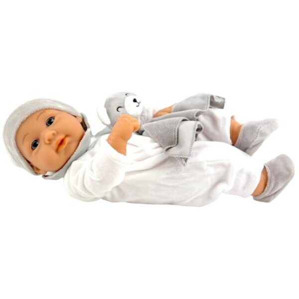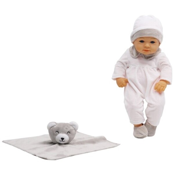 Suloinen 35 cm nukke Happy Friendiltä on kovarunkoinen ja sopii sekä leikkiin että halailuun. Hänellä on yllään suloiset vauvanvaatteet ja mukanaan oma pehmeä plyysinalle - aina valmiina halailuun ja seikkailuihin. Täydellinen roolileikkeihin, halailuun tai osaksi nukkekokoelmaa. Lily tuo iloa ja turvallisuutta kaikille pienille nukenystäville.