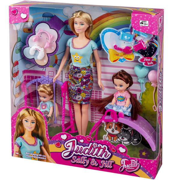 Judith on Sallyn ja Jillin kanssa leikkikentällä! Sekä liukumäen että keinun avulla Judith voi viihdyttää Sallya ja Jilliä tuntikausia!