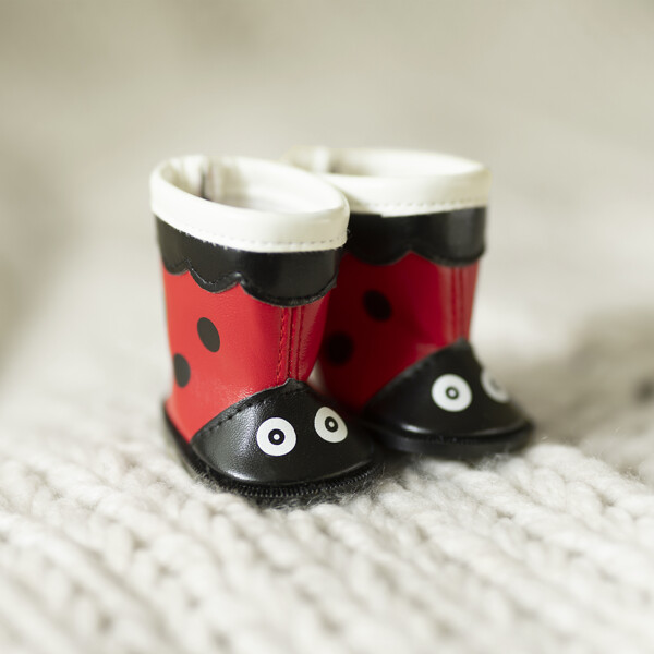 Saappaat iloisissa, leikkisissä väreissä ja sopivat nukeille, joiden koko on 36-40 cm.