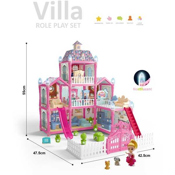 Kaunis nukkekotitalo, jossa on paljon hauskoja lisävarusteita!