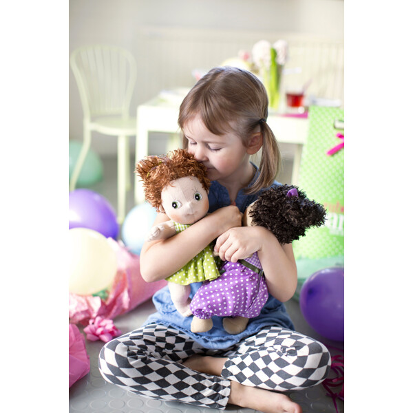 Hanna on pehmeä, supersuloinen nukke Rubens Barnilta, josta tulee nopeasti lapsesi paras kaveri! Nukke on 32 cm korkea ja sillä on pehmeä vartalo, ruskea iho, tummanruskeat hiukset ja irrotettavat vaatteet. Hanna rakastaa lähteä tutkimusretkille, lukea satuja yhdessä ja leikkiä kunnolla. Lapsi voi harjoitella pukemaan ja riisumaan nukkea, jotta hän on valmis kaikenlaisiin seikkailuihin. Täydellinen lapsen ensimmäiseksi nukeksi!