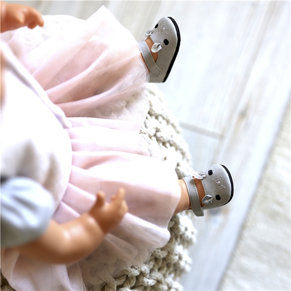 Tänään on nukke ballerina ja nämä somat ballerinatossut vievät hänet tanssiin kanssasi! Tossuissa on somat hiirikasvot edessä ja pienet kimaltavat korvat.