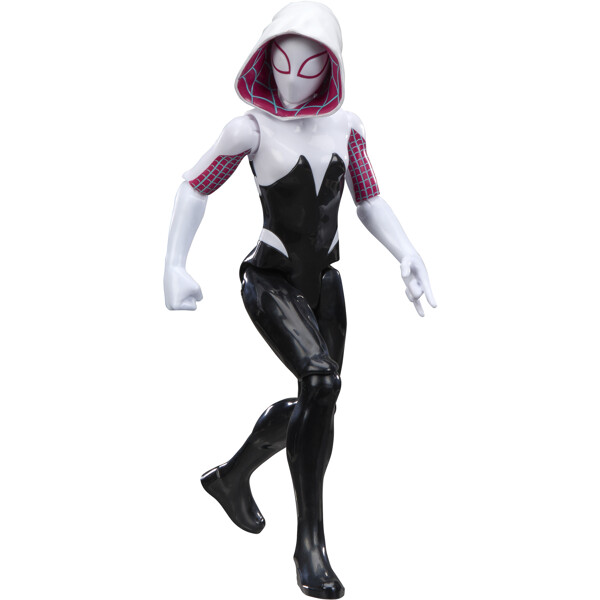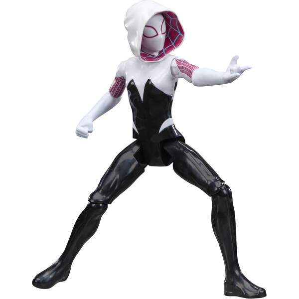 Klassisella mustan, valkoisen ja vaaleanpunaisen muotoilulla sekä 11 taivutettavalla nivelkohdalla. Tämä Ghost-Spider Spidey -lelu on 27,9 cm korkea ja suunniteltu 30 cm mittakaavaan. Lapset voivat luoda uudelleen suosikkihetkensä tai kuvitella uusia ja jännittäviä supersankariseikkailuja tämän Marvel-hahmon kanssa.