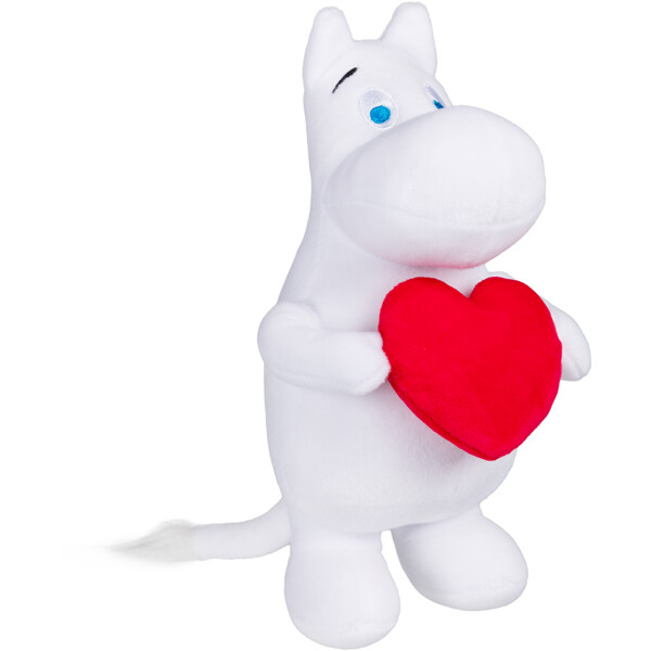 Ihana pehmeä ja pörröinen Muumipeikko, jolla on pieni sydäntyyny sylissään. Pehmolelu on noin 23 cm korkea. Täydellinen piristämään arkea tai lahjaksi jollekin, josta pidät!