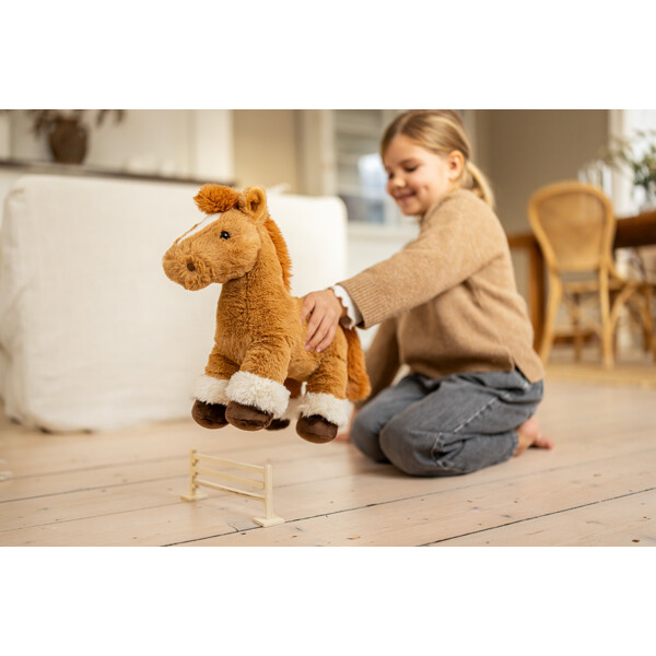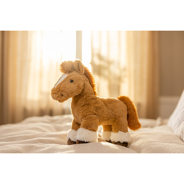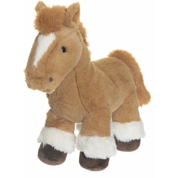 Hevoset ovat suosittuja eläimiä, ja sama pätee myös pehmoleluhevosiin. Tämä on pehmeä ja halattava, mutta tarpeeksi tukeva pysyäkseen itsenäisesti pystyssä.