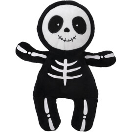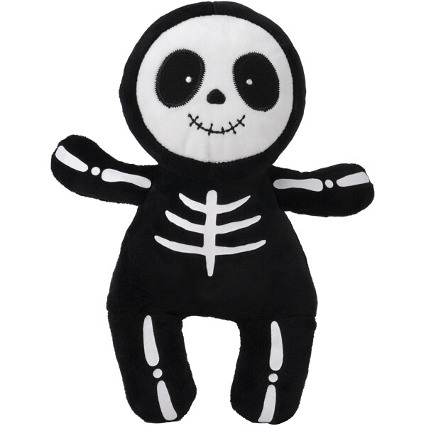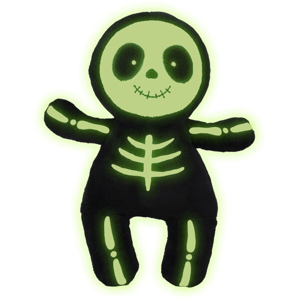 Pelottavan ihana pehmolelu, joka on muotoiltu luurangoksi lyhytkarvaisesta plyysistä, ja jonka kasvot ja luuranko loistavat pimeässä.