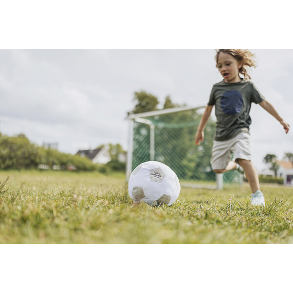 Pehmeä jalkapallo, jossa on klassinen kuvio valkoisena ja greigenä.