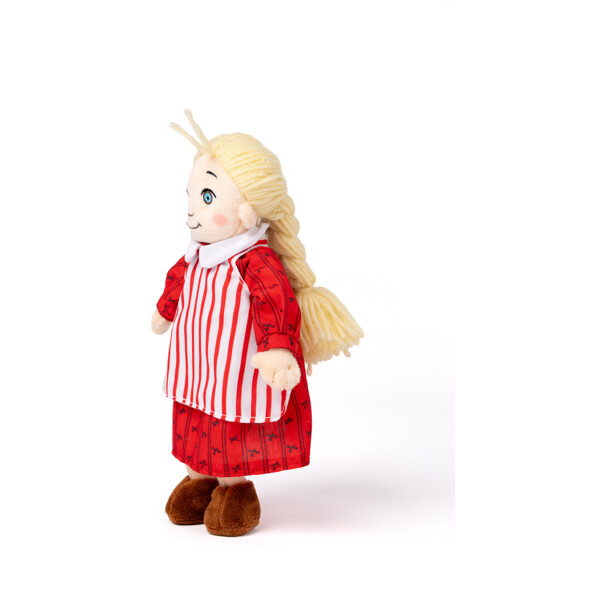 Tässä on Ida, Eemelin kiltti ja utelias pikkusisko Astrid Lindgrenin klassisista kertomuksista Lönnebergasta. Hänellä on yllään hieno punainen mekko valko- ja punaraitaisella esiliinalla ja hän on aina valmis lähtemään uusiin seikkailuihin – tai yrittämään estää Emilin kepposia. Pehmeä pehmolelu on täydellinen leikkiin, satuhetkiin ja mukaviin haleihin.