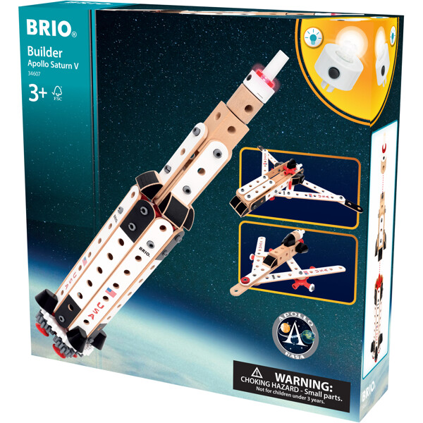 Rakenna avaruusikoni BRIO Builderin 34607 Apollo Saturn V:llä. Tällä NASA-inspiroimalla raketilla, jonka korkeus on 60 cm ja osia 91, avaruusmatkat tulevat todeksi.