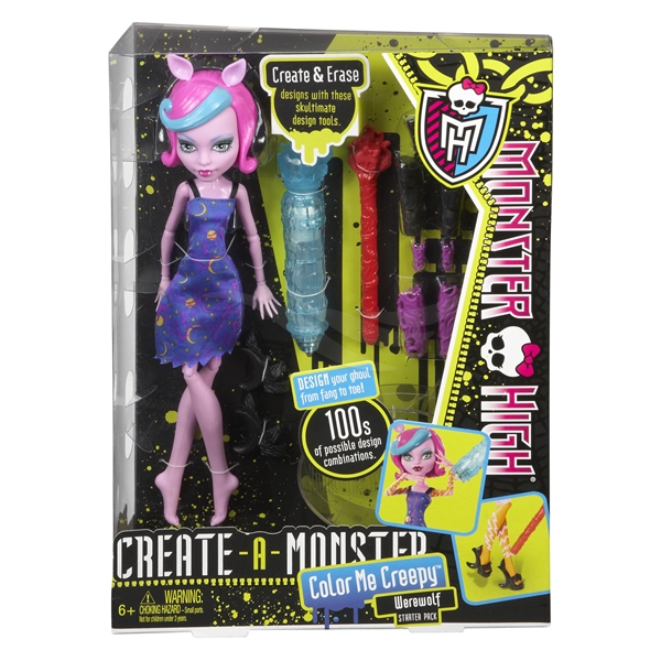 Monster High Color Me Creepy Starter Set on upean Color Me Creepy designpaketin aloituspakkaus! Monster High Color Me Creepy on aivan uusi tapa luoda omia, hyytävän hienoja Monster High -tyttöjä! Dr Frankenstein ei ole enää ainoa, joka osaa tehdä hirviöitä – nyt myös sinä osaat! Uuden Color Me Creepy -pakkauksen avulla muutat helposti hirviöiden ulkonäköä ja asusteita veden ja kynien avulla.
