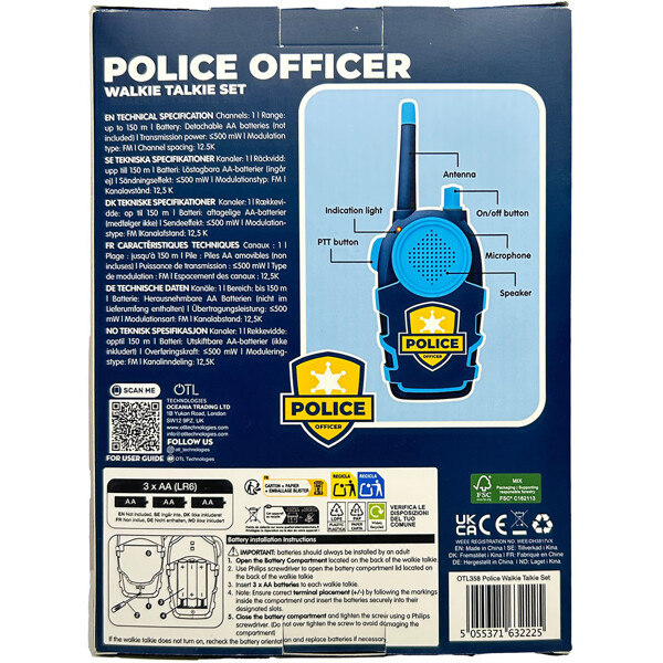 Jokainen radiopuhelin vaatii 3 AA-paristoa (eivät sisälly), joten varmista, että sinulla on muutama käsillä loputtoman hauskanpidon varalle. Tämä setti on täydellinen lahja poliisien harrastajille ja tarjoaa tunteja viihdettä ja mielikuvituksellista leikkiä.