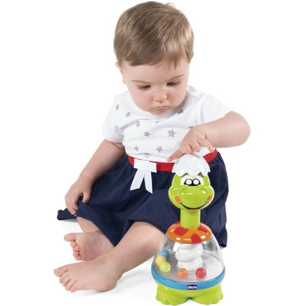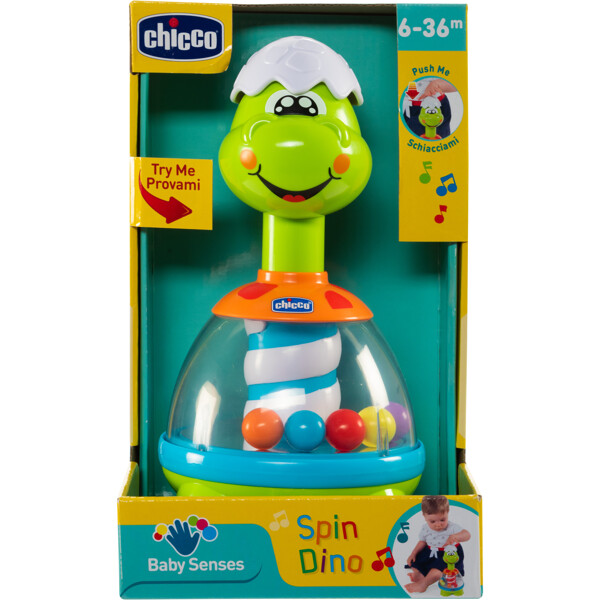Spin Dino Chiccolta on lelu, joka on suloisen dinosauruksen muodossa ja auttaa lastasi kehittämään manuaalista koordinaatiota ja kuuloa.