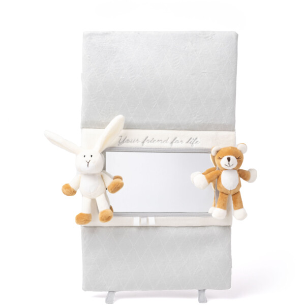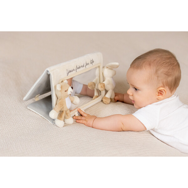 Diinglisar-vauvapeili seisoo tukevasti ja oikeassa kulmassa, jotta vauva nostaisi päätään. Toimitetaan lahjapakkauksessa, jossa on silkkirusetteja. Sopii 3 kuukaudesta alkaen, kun lapsi alkaa nostaa päätään.