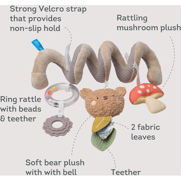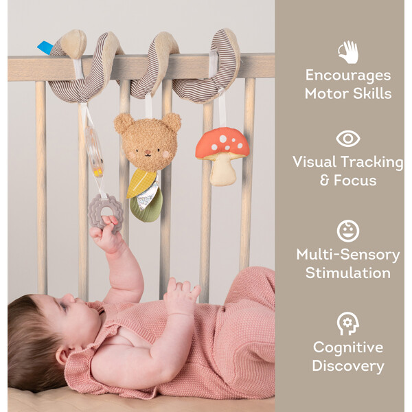 Viihdettä matkalle – aina ulottuvilla!Taf Toys Bear Hug Spiral on täydellinen lelu turvaistuimeen tai vaunuihin. Pehmeä spiraali kiinnittyy helposti ja siinä on värikkäitä roikkuvia leluja, kuten puruleluja, helmirenkaita ja suloinen nalle – kaikki stimuloimaan lapsesi aisteja ja hienomotoriikkaa vastasyntyneestä 6 kuukauteen asti.Helppo ottaa mukaan, turvallinen ja monikäyttöinen – tekee jokaisesta matkasta rauhallisemman ja hauskemman sekä lapsille että vanhemmille.