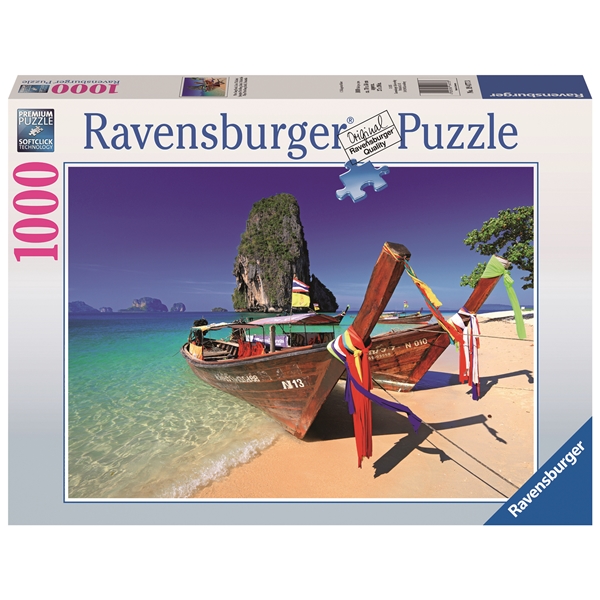 Palapeli 1000 Palaa Phra Nang Beack Krabi on aurinkoinen, yksityiskohtainen ja värikäs 1000 palan palapeli kauniilla aiheella rannasta Thaimaassa.Tee palapeliä ja nauti hetki rentouttavasta puuhastelusta!Ravensburger on valmistanut palapelejä Ravensburgerissa, Saksassa jo vuodesta 1891 lähtien. Heidän menestyksensä palapeliharrastajien keskuudessa on kaikkien yksityiskohtien tarkkuuden ansiota. Ravensburger käyttää ainoastaan erityista kartonkia, joka on kehitetty vain Ravensburgerin käyttöön. He yhdistävät kartongin hienoon pellavarakenteiseen paperiin saadakseen mattapintaisen, kiillottoman pinnan, josta huokuu käsinkosketeltava laadukkuus. Taatakseen sen, ettei ole olemassa kahta samanlaista palaa ja täydellisen sopivuuden, jotka ovat tehneet Ravensburgerista maailmankuulun, ovat he kehittäneet aivan omat leikkuukoneet.