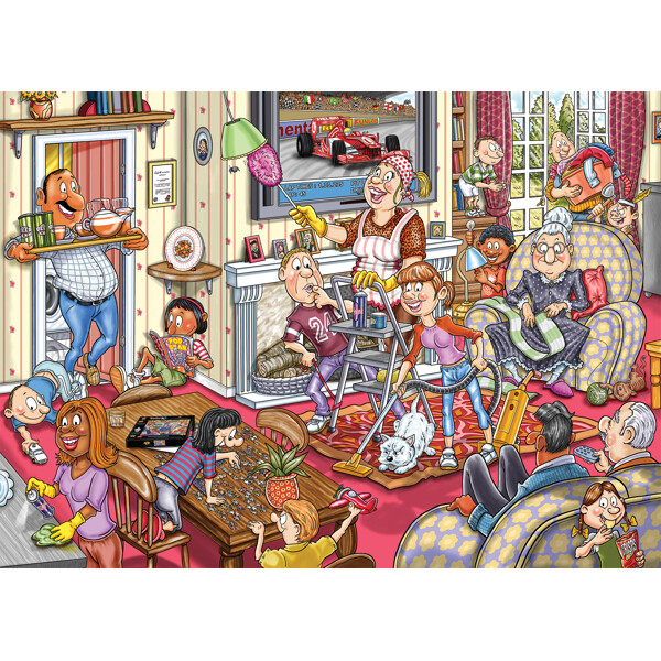 Kevät on virallisesti saapunut, ja koko perhe on siivousmoodissa! Pölyhuiska on esillä, pölynimuri jylisee ja toiminta surisee, kun kaikki auttavat – tai ainakin teeskentelevät. Isä tulee ulos tarjottimen kanssa, jossa on virvokkeita pitääkseen kaikki motivoituneina, joten mikä voisi mennä pieleen?