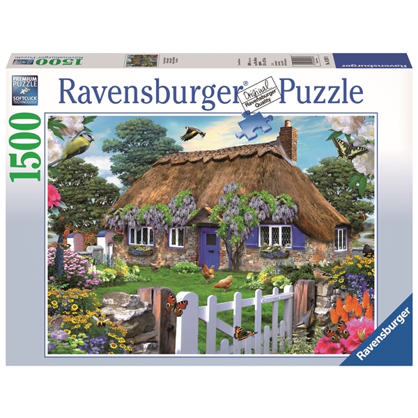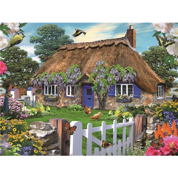 Palapeli 1500 Palaa Cottage on yksityiskohtainen ja värikäs 1500 palan palapeli aiheenaan brittiläisen taiteilijan Howard Robinsonin kuva, tunnettu kauniista ja vastustamattomista eläin- ja mökkiaiheistaan. Tämä palapeliaihe näyttää kauniin brittiläisen mökin Englannissa, täynnä värikkäitä yksityiskohtia kuten sininen ovi ja siniset ikkunaluukut. Värikkäät ja kauniit kukkaistutukset ja perhoset etualalla. Nauti rentouttavasta palapelin teosta!