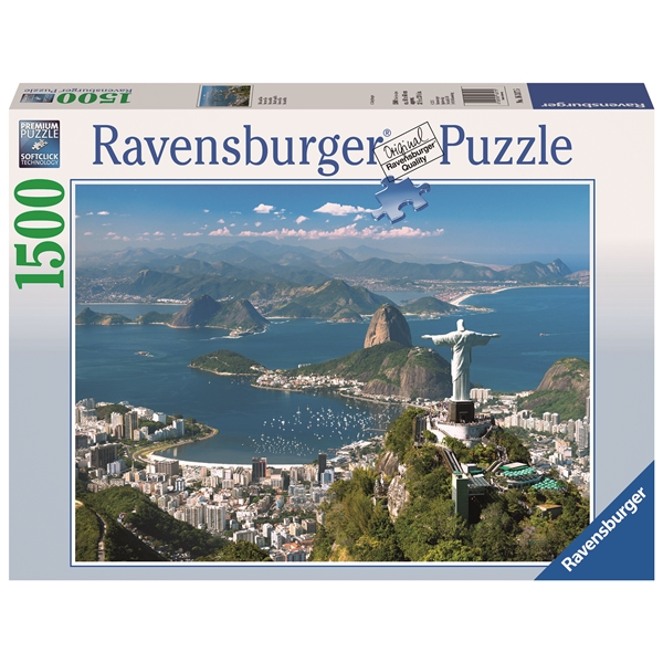 Palapeli 1500 Palaa Rio on 1500 palan laadukas palapeli saksalaisilta Ravensburger-palapelimestareilta. Aihe esittää kaunista brasilialaista Rio de Janeiron kaupunkia. Etualalla on ikoninen Kristus-patsas ja taka-alalla näemme kauniin veden. Nauti rentouttavasta palapelin teosta!Ravensburger on valmistanut palapelejä Ravensburgerissa, Saksassa, jo vuodesta 1891 lähtien. He ovat saavuttaneet menestyksensä palapeli-intoilijoiden keskuudessa ympäri maailmaa heidän yksityiskohtatarkkuutensa ansiosta. Ravensburger käyttää vain erityispaksua kartonkia, erityisesti Ravensburgerille kehiteltyä. He yhdistävät paksun kartongin hienoon pellavarakenteiseen paperiin saadakseen matan, kiiltämättömän pinnan, huokuen käsinkosketeltavaa laatua. Voidakseen taata ettei ole kahta samanlaista palaa ja taatakseen täydellisen sopivuuden, joka on tehnyt Ravensburgerista maailmankuulun, käyttävät he itse kehittelemiään leikkuukoneita.