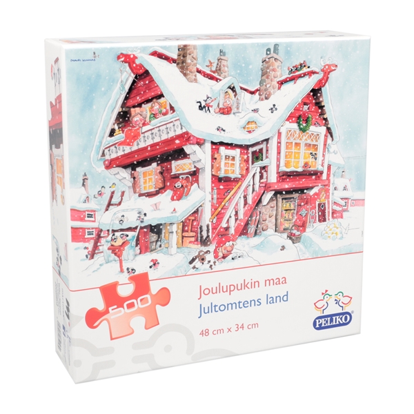 Joulupalapeli Joulupukin Maa 500 Palaa on superhieno palapeli jonka on piirtänyt suomalainen taitelija Mauri Kunnas. Aihe on yksityiskohtainen ja löydät jatkuvasti uusia jännittäviä yllätyksiä kuvasta! Tässä kuvassa näemme miltä joulupukin talo näyttää ja mitä kaikkea tapahtuu talon ympärillä!