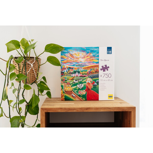 750 palan palapeli Pelikolta, jossa on taiteellinen aihe suomalaiselta taiteilijalta Terttu Raja-aho. Värikäs, mielikuvituksellinen ja yksityiskohtainen aihe on jännittävä koota ja tutkia.