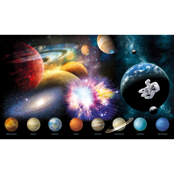 Hieno 100 palan pahvipalapeli avaruusaiheella. Kokoa palapeli ja näe eri planeettojen ilmestyvän esiin.
