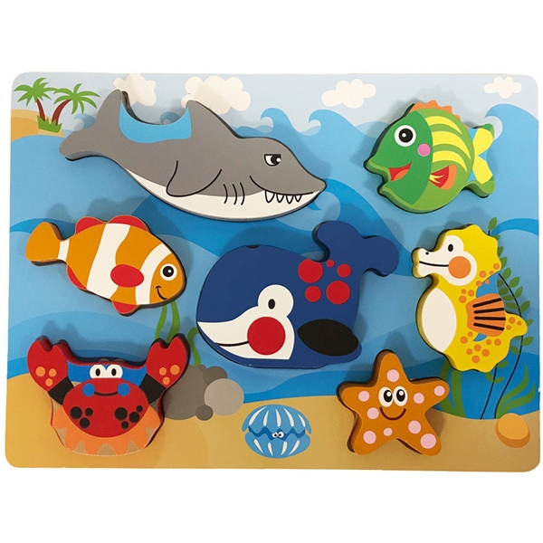 Iloiset kuvat ja kirkkaat värit ilahduttavat palapelin rakentajaa ja kehittävät samalla lapsen hahmotuskykyä ja sorminäppäryyttä. Lapset voivat myös leikkiä näillä kestävillä palapelinpaloilla. Palapelin teemana ovat meren eläimet.