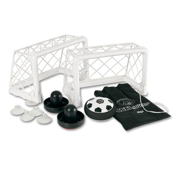 Mukana ilmajalkapallo, kaksi maalia, kaksi ohjainta sekä käytännöllinen kangaspussi. Vaatii 2 x AAA, 1,5 V pariston (ei tule mukana). 6 vuodesta alkaen.