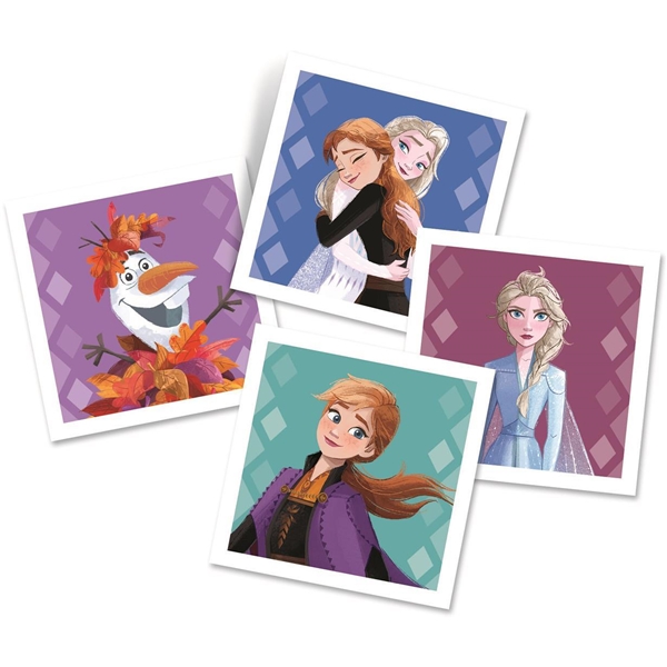 Klassinen peli, joka auttaa kehittämään havainnointikykyä ja muistia. Peli sisältää 48 laattaa, joiden koko on 5 x 5 cm, ja niissä on hieno painatus suositusta Frozenista. Upeiden värikuvien ansiosta on vielä hauskempaa haastaa ystävät kaikkien aikojen tunnetuimmalla muistipelillä.