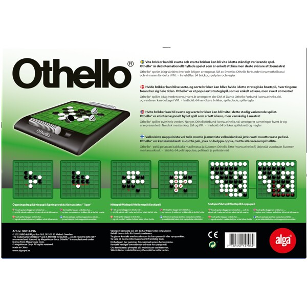 Alga Othello Original on suursuosikki nuorten strategiapelaajien keskuudessa! Peli on helppo ymmärtää, mutta sen täydelliseen hallitsemiseen teknisine hienouksineen kuluu elinikä! Othelloa pelataan ympäri maailman, myös maailmanmestaruusotteluissa vuodesta 1977 lähtien! Othellossa voittaa se, joka pelin loputtua omaa eniten oman värisiään levyjä vangittuaan vastustajansa levyt omiensa väliin.