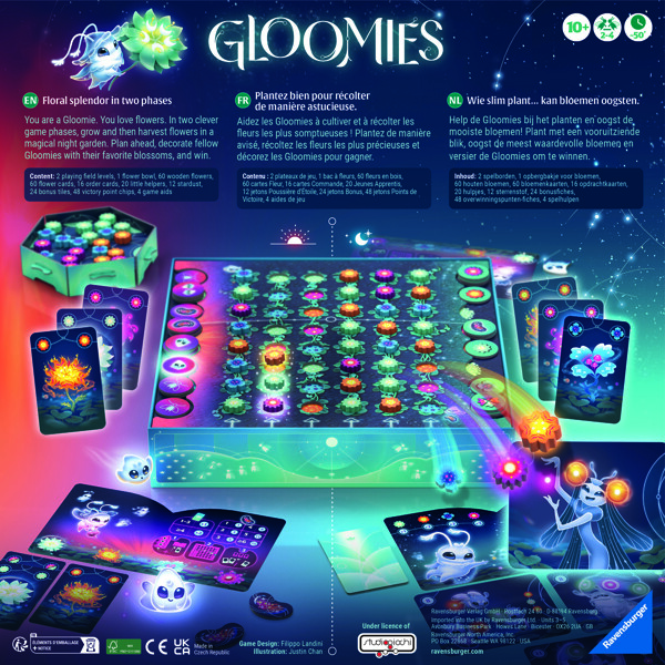 Gloomien maagisessa maailmassa kaikki pyörii upeimpien kukkien kylvämisen ja korjaamisen ympärillä. Kahdessa jännittävässä vaiheessa pelilauta täyttyy ensin kukilla ja korjataan sitten uudelleen. Se, joka on fiksu ja jolla on hieman onnea korttien kanssa, varmistaa arvokkaimmat kukat ja voittaa tämän yksinkertaisen strategiapelin!