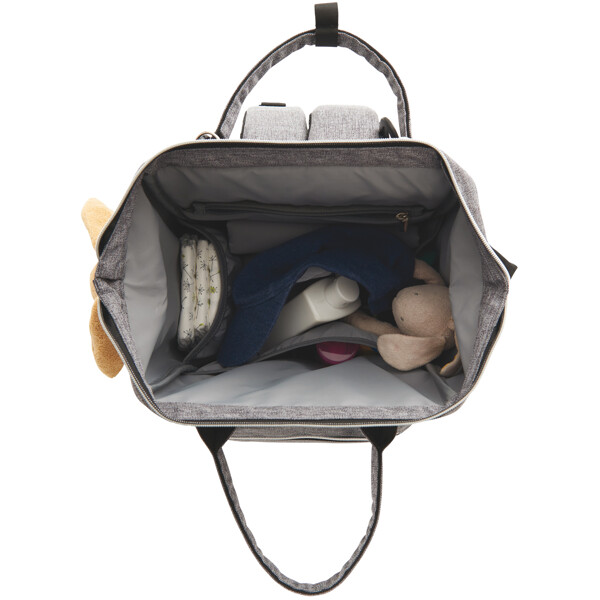 Tinéo Hoitolaukku Reppu on suuri ja käytännöllinen hoitolaukku vettä hylkivästä kankaasta, jossa on harkittuja toimintoja aktiivisille vanhemmille. Hengittävien olkahihnojen, suuren teräslangalla varustetun aukon ansiosta laukun sisältöön on helppo päästä käsiksi. Hoitolaukussa on useita älykkäitä lokeroita, mukaan lukien eristetyt pullotelineet ja sivutasku kosteuspyyhkeille. Laukussa on myös kiinnitys matkalaukkuun, mikä tekee matkustamisesta lasten kanssa turvallista. Hoitolaukun mukana tulee lastenvaunukoukut ja hoitoalusta.Ominaisuudet:Älykkäät lokerot optimaaliseen järjestelyynVankka aukko teräslangalla, täydellinen kun sinulla on vain yksi käsi vapaanaEristetty lokero juomilleSivutasku kosteuspyyhkeillePehmustetut olkahihnat 3D-meshilläKiinnitys matkalaukkuunVettä hylkivä materiaali ja helppo pyyhkiä puhtaaksiHoitoalusta mukanaKaksi lastenvaunukoukkua mukana