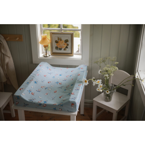 Käytännöllinen hoitoalusta, jossa on kuva Vaahteramäen Eemeli-sarjasta.