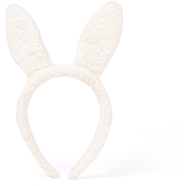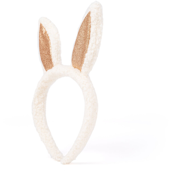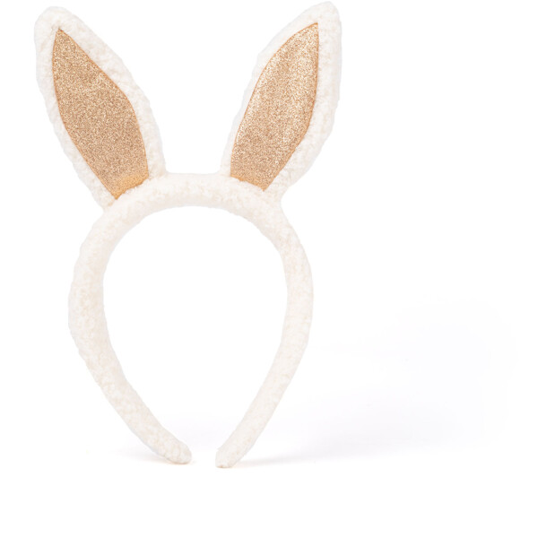 Pehmeä panta, jossa on valkoiset kanin korvat ja kimaltelevia kultayksityiskohtia.