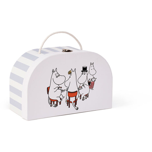 Mitä pakkaat laukkuun seuraavalla kerralla? Tämä tukeva pahvilaukku, jossa on Muumiperheen kuvio, sopii hyvin kahvisetille, pienelle piknikille tai aarteille, jotka otetaan mukaan retkelle.