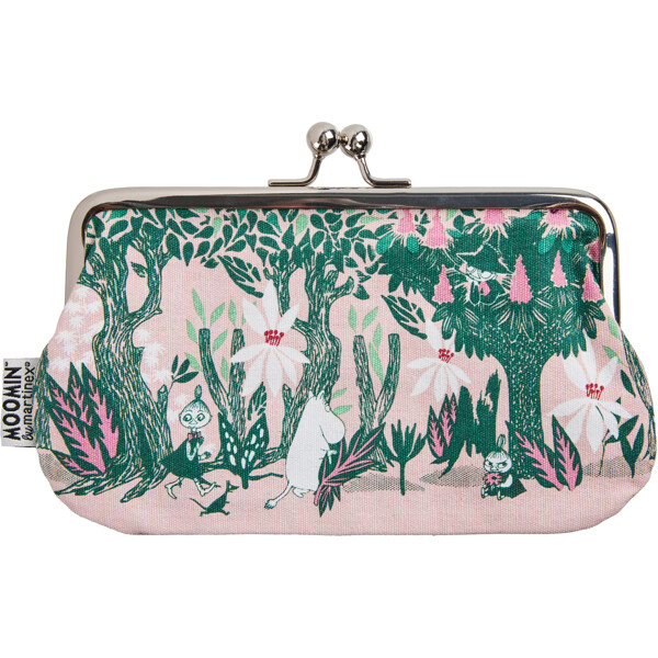 Pieni muumi kangaspussi, valmistettu tukevasta puuvillakankaasta. Yläosassa on metallinen lukko. Käytä lompakkona, penaalina tai meikkipussina.