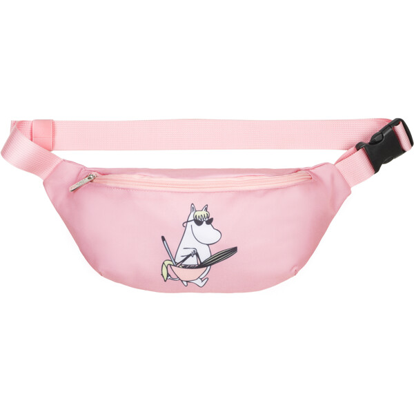 Käytännöllinen Muumi vyölaukku, joka on valmistettu kestävästä polyesteristä. Laukussa on säädettävä vyötäröhihna ja vetoketju ylhäällä.