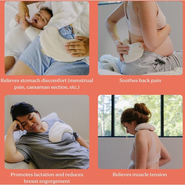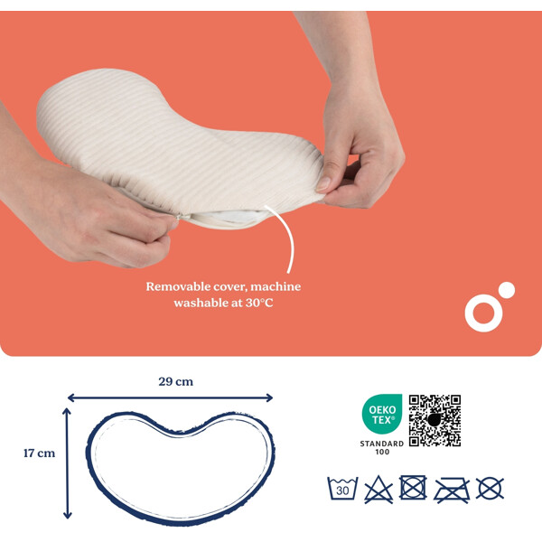 Doomoo Lievittävä Kylmä & Lämpötyyny Rapsilla on kaarevan muotoinen tyyny, joka on erityisesti suunniteltu lievittämään kipua ja epämukavuutta – raskaudesta imetykseen ja toipumiseen. Muoto on huolellisesti sovitettu naisen keholle ja se asetetaan helposti kohdun, alaselän, niskan tai arkojen rintojen alueille.Tyyny sisältää irrotettavan lämpötyynyn, joka on täytetty luonnollisilla rapsinsiemenillä, mikä tarjoaa tasaisen ja miellyttävän lämmön tai kylmän jakautumisen – täysin ilman kemikaaleja.Edut ja käyttökohteet:Raskauden aikana: lievittää lihasjännitystä ja kipua alaselässä tai lantiossaImetyksen aikana:Lämpö: stimuloi maidontuotantoa ja lievittää maitotukkeumiaKylmä: lievittää arkoja tai turvonneita rintoja, mustelmia ja tulehduksiaJoustava käyttö: voidaan asettaa kohdun, rintojen, niskan tai selän päälleLuonnollinen täyte: sisältää rapsinsiemeniä, jotka pitävät lämmön ja kylmän tehokkaastiErgonominen kaarimuoto: sovitettu naisen keholleNäin käytät tuotetta:Kylmään käyttöön: aseta sisätyyny suljettuun muovipussiin pakastimeen vähintään 2 tunniksiLämpimään käyttöön: lämmitä tyyny varovasti mukana tulevien ohjeiden mukaan (esim. mikroaaltouunissa)