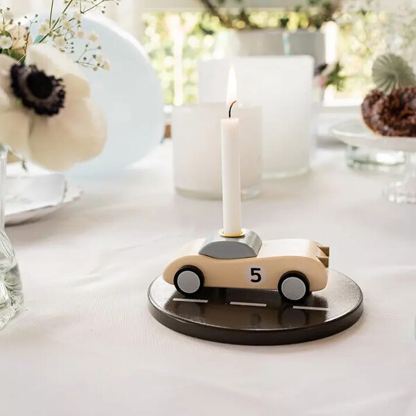Hip-hip-huraa! Anna Jabadabadosin auton muotoinen kynttilänjalka koristaa pöytää tai aamiaistarjotinta jokaisena syntymäpäiväaamuna. Anna siitä tulla kestävä perinne kaikissa syntymäpäiväjuhlissasi.