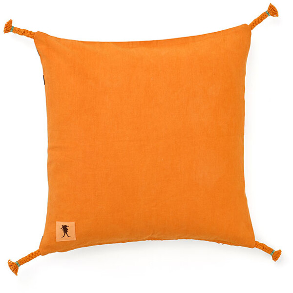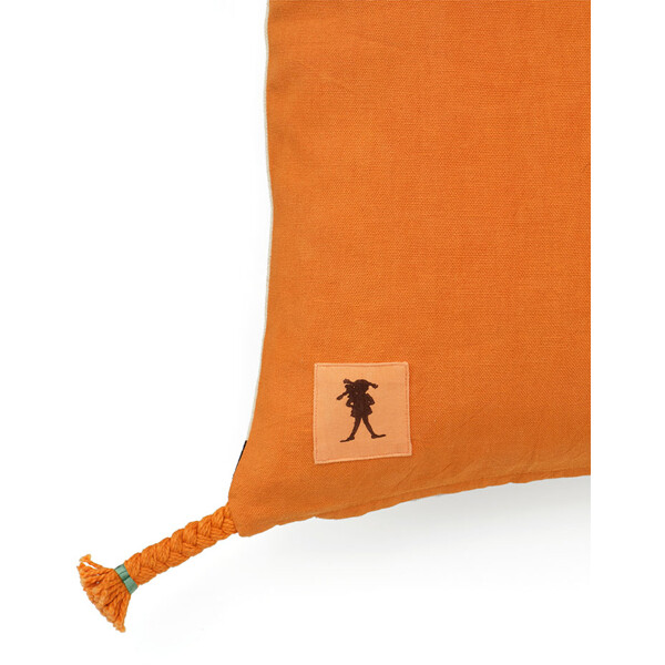 Tämä tyynynpäällinen saa inspiraationsa Pepin erottuvasta tyylistä ja tuo leikkisän lisän huoneeseen. Etupuolella on pilkullinen kuvio, joka muistuttaa Pepin rakastettua hevosta, kun taas takapuolella on lämmin poltettu oranssi väri – kunnianosoitus Pepin vastustamattomille punaisille hiuksille. Jokaisessa kulmassa on letitetty yksityiskohta, joka vastaa päällisen takapuolta ja heijastaa hänen ikonista kampaustaan. Päällinen on suunniteltu sopimaan 50x50 cm sisätyynylle (ei sisälly) ja siinä on vetoketju helppoa irrottamista varten.