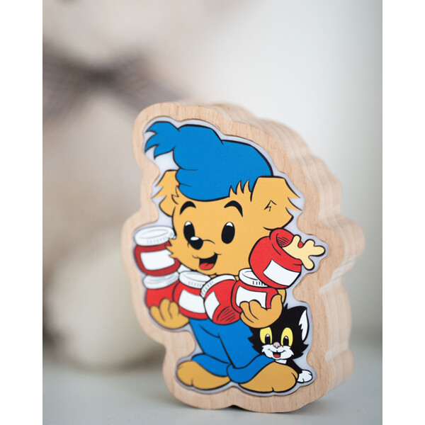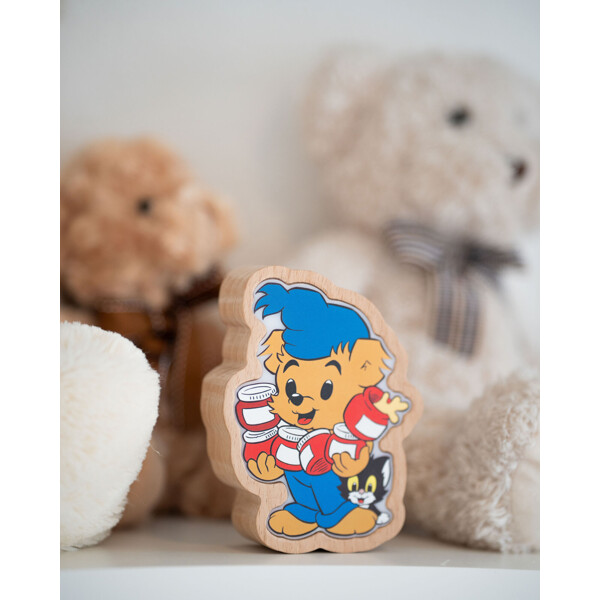 Turvallinen yövalo, jossa on Bamse, loistaa lämpimällä valolla. Ladattava ja kaunis sisustuselementti – ystävällinen kaveri, joka valvoo pimeässä.